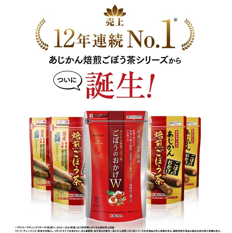 ※TPCマーケティングリサーチ(株)調べ。2012〜2023年度ごぼう茶市場における企業別売上調査(リーフ、ティーバッグ、粉末を対象とし、リキッドタイプは含まない。また業務用、加工用は対象外。)あじかん焙煎ごぼう茶シリーズの全商品の売上実績を含み、機能性表示食品の届出以前の売上実績も含む。
